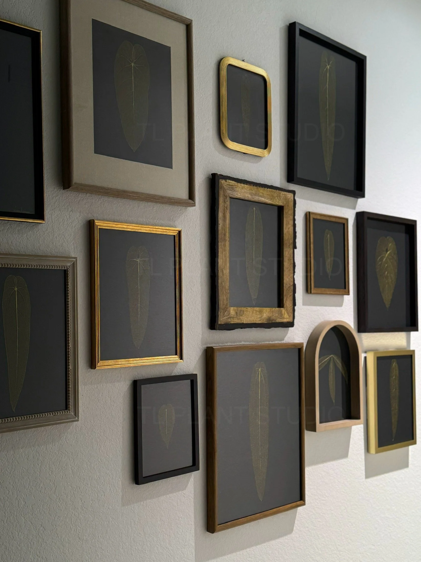 Introducing our Golden Anthurium Leaf Skeleton Collection, elegantly framed in lustrous gold and set against a dramatic black background. This beautiful piece captures the delicate intricacies of an Anthurium leaf's skeletal structure in stunning detail, with its veins glistening in brilliant gold. The rich contrast between the golden veins and the deep black canvas creates a sense of opulence and modern elegance.